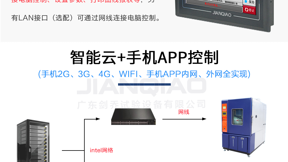 產品型號:JQTH-1500L 品牌:劍 喬 用途:廣東劍喬新款-高低溫交變濕熱試驗箱(簡稱:恒溫恒濕試驗箱),主要用來測試各種材料耐熱、耐寒、耐干、耐濕的性能。本機采用中英俄文顯示彩色觸控式屏幕畫面,操作簡單,程序咨詢熱線:13829135130